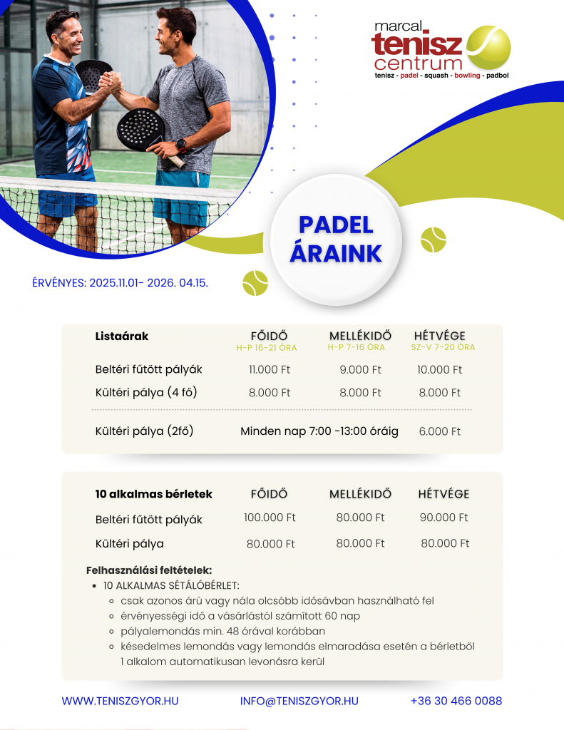 A sport nemcsak mozgás, hanem közösségi élmény is. Legyen szó egy baráti padelmeccsről, egy jó teniszről vagy squashról, nálunk mindig találsz helyet és partnert a játékhoz. Gyere, és élvezd az aktív kikapcsolódást!”